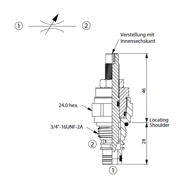 Bohrung 08W-2, 3/4-16UNF